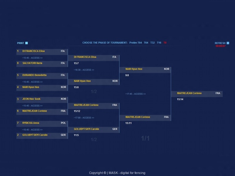 MASK Team will be conducting in cooperation with DT. MASK software is in line with all rules set by the FIE and EFC. - Displaying all information during fights on pistes: